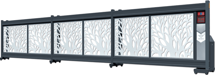 伸縮門主要依靠交叉桿實現伸縮、滑塊導向滑動,整條門體動作點太多,故障率高。